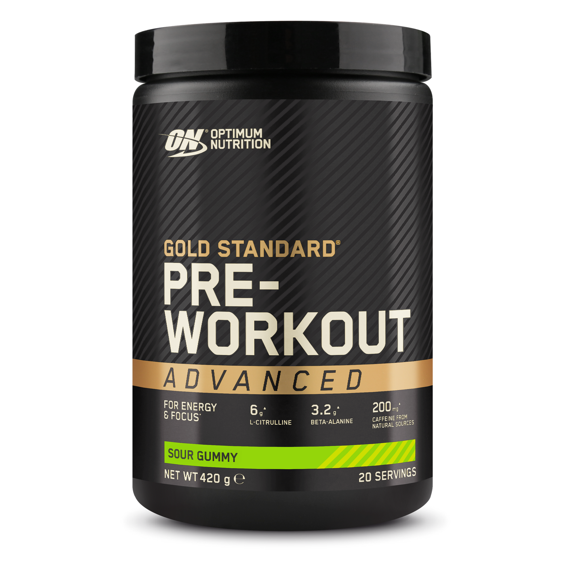 Optimum Nutrition, the World?s #1 sports nutrition brand*, brings you the intense and dialled-up version of our core pre-workout powder. Meet the ON Gold Standard Pre Workout Advanced sports food supplement designed for high-performance athletes and true sports enthusiasts. This intense pre-workout formula supports energy and focus to support your peak training. When compared to the Gold Standard pre-workout powder, this advanced powder contains 8x more L-Citrulline and 2x more Beta-Alanine per serving. The ON formula contains 200 mg of caffeine from natural sources per serving, making it a great energy and focus drink that increases alertness and improves concentration***, helping you achieve your fitness goals. The ON Advanced pre-workout supplement contains vitamins B6, B12, niacin, and pantothenic acid, which aid in the maintenance of normal energy-yielding metabolism and the reduction of tiredness and fatigue**. Designed for the goal-focused athlete, the ON pre-workout come in 4 great-tasting flavours ? Tropical, Sour Gummy, Fruit Punch and Blue Raspberry ? and are an easy and convenient addition to your daily protein snacks. To enjoy, mix 3 scoops (21 g) in 400 ml of cold water and shake. Recommended consumption of 1 serving per day. Consume 45-60 minutes before exercise.