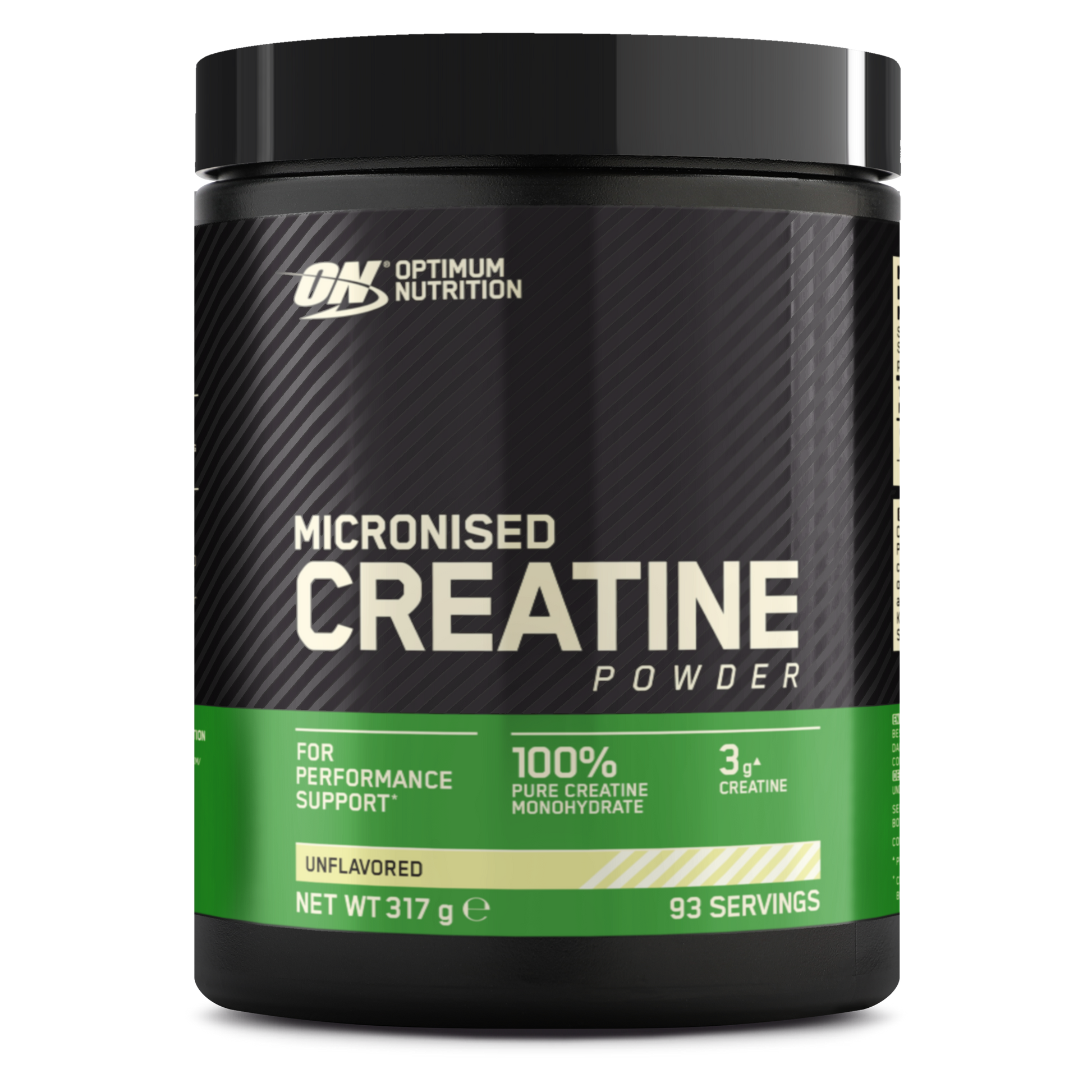 ON Micronised Creatine Powder, made from 100% pure creatine monohydrate, contains 3 g of creatine per serving and improves physical performance in short bursts of high-intensity exercise**.