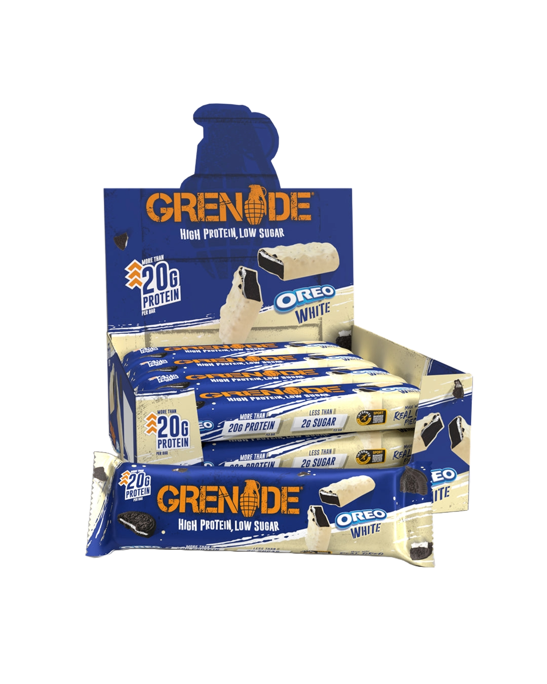 Introducing Grenade OREO White Protein Bar – where discipline meets indulgence. Arm yourself with over 20g of muscle-fueling protein, and less than 2g of sugar, all while charging your taste buds with the iconic OREO white-chocolate blitz.